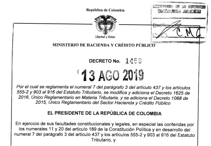 Descargar Decreto 1468 de 13 AGO 2019.
